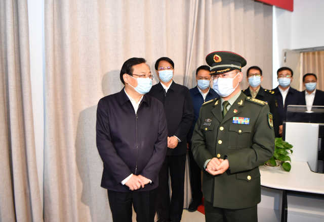 梁言顺来到宁夏军区与军区班子成员交流,了解军区历史沿革、战备训练和参与疫情防控等情况。