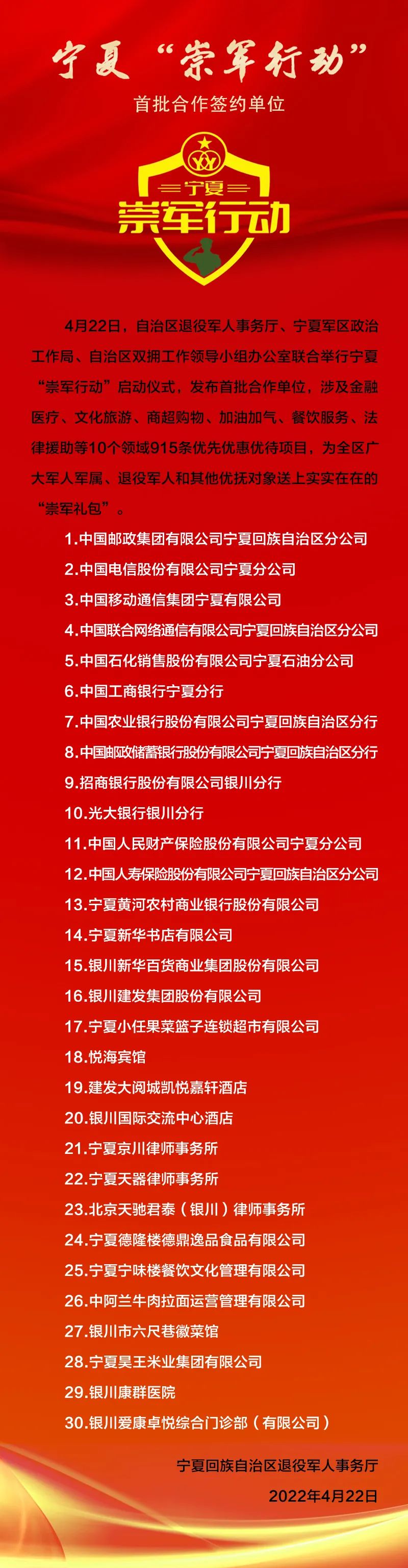 宁夏“崇军行动”首批合作签约单位
