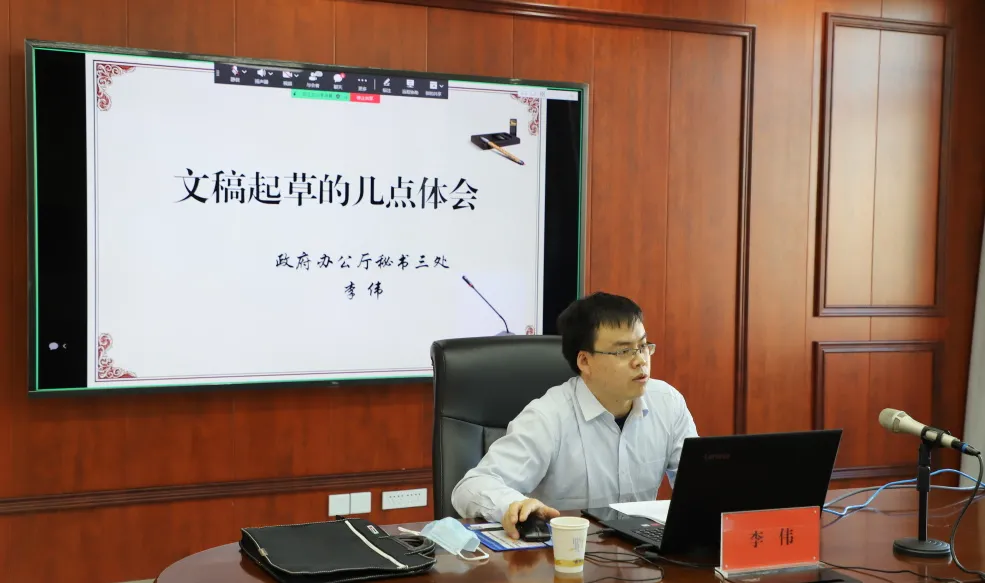 自治区政府办公厅秘书三处副处长李伟就“机关公文写作”进行辅导。