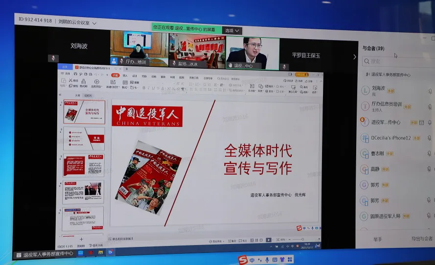 各市、县(区)退役军人事务局办公室主任、宣传员和厅机关处室(单位)相关人员300余人参加培训,银川市、平罗县等市县组织全体干部职工全程在线参加。