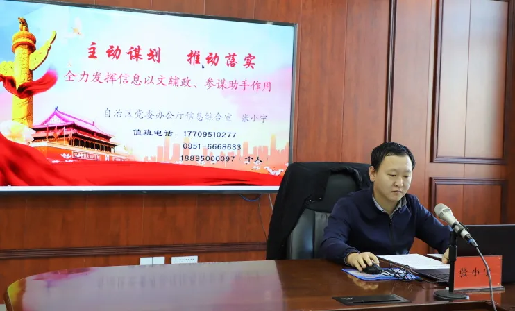 自治区党委办公厅信息综合室副主任张小宁就“全力发挥政务信息以文辅政、参谋助手作用”进行辅导。