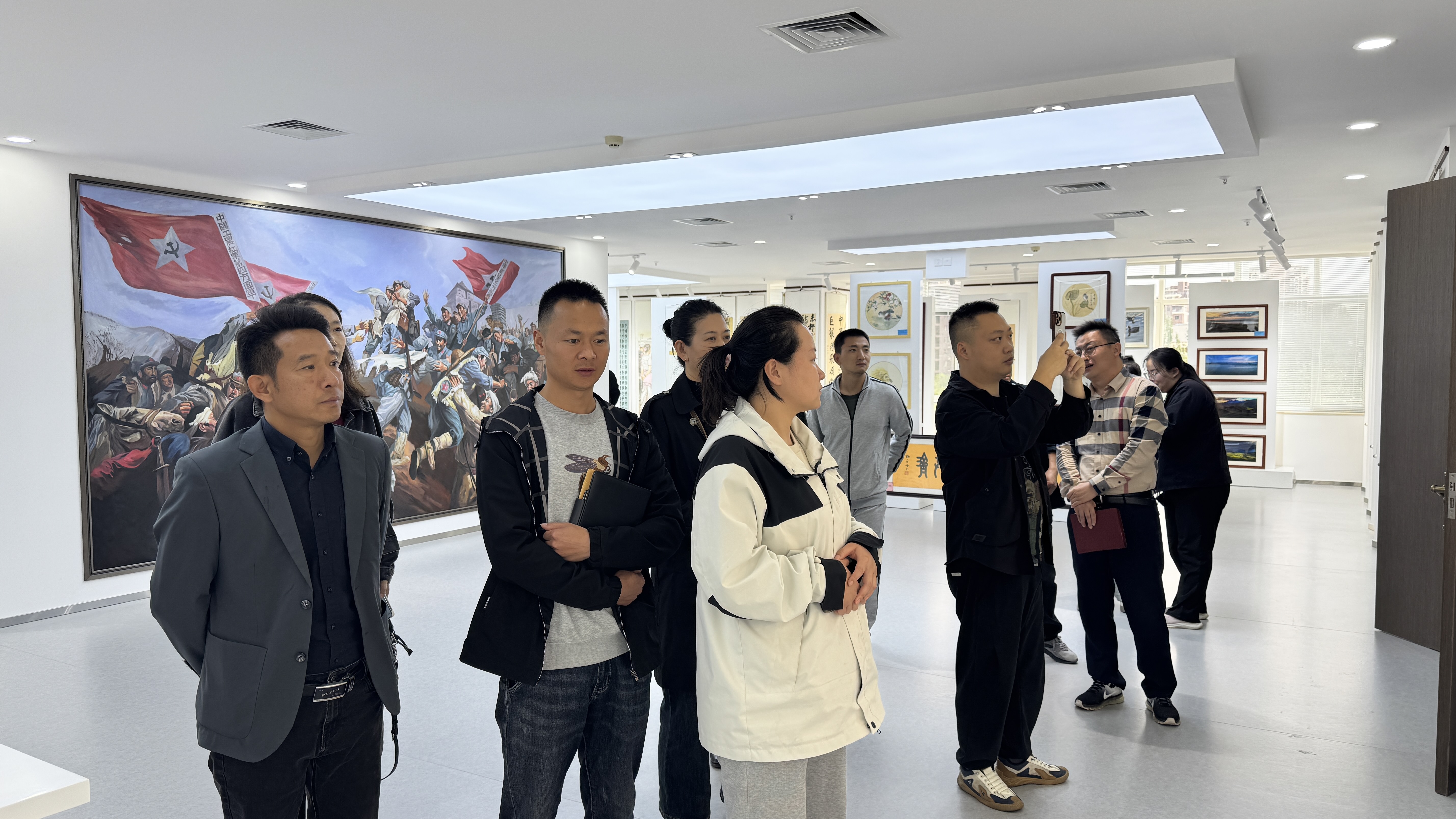 本次活动邀请退役军人、退役军人工作者等12名代表走进厅机关参观交流。代表们听取了展板讲解,通过全区退役军人工作基本情况、牢记嘱托感恩奋进、打造“塞上双拥”“宁夏老兵”“戎铸同心”“三情服务”“区域协作”品牌板块,充分了解自治区退役军人事务厅重点工作、品牌工作;参观了自治区退役军人服务中心工作大厅,体验了退役军人服务工作流程;参观了信息指挥中心,全面了解全区退役军人事务工作政务服务运行情况;参加了“翰墨迎华诞 丹青铸军魂”全区退役军人书画摄影文艺作品展,充分感受了广大退役军人对工作生活的激情热爱,对党和国家的无限忠诚,对伟大新时代的深情讴歌。在随后召开的座谈会上,观看《戎耀新时代 奋楫新征程——奋力推进新时代新征程全区退役军人工作高质量发展》工作片,相关工作人员并对退役军人关心关注的政策进行解读,各位代表们积极对退役军人事务工作建言献策。代表们表示,这次活动为退役军人提供了一个与政府部门面对面交流的平台,通过互动和沟通,受邀代表感受到了政府对他们的关心和重视,极大地增强了退役军人的归属感和获得感,也促进了政府与退役军人之间的良性互动,进一步增强了政府的公信力、凝聚力和执行力。