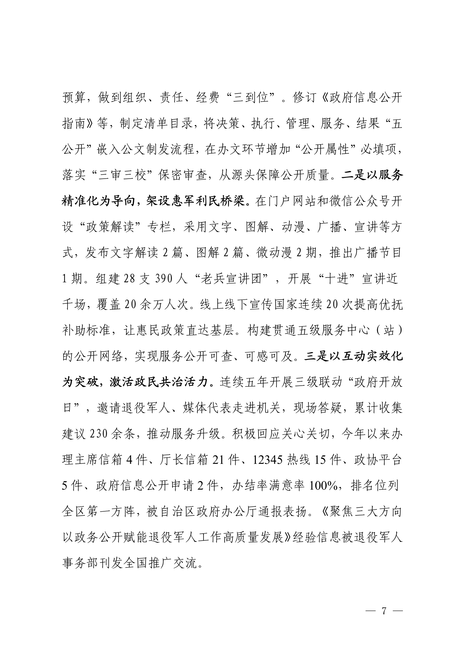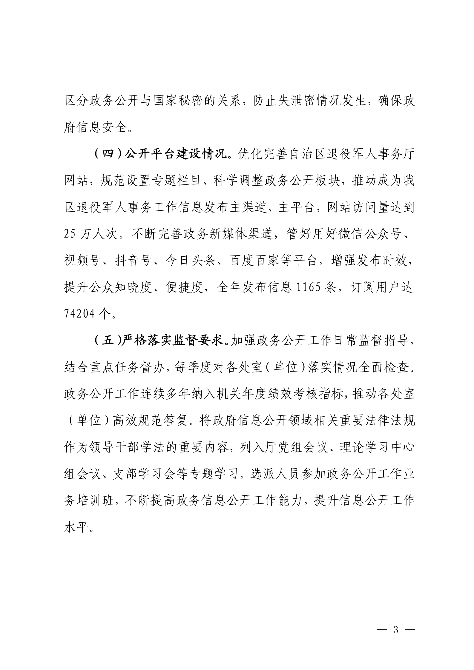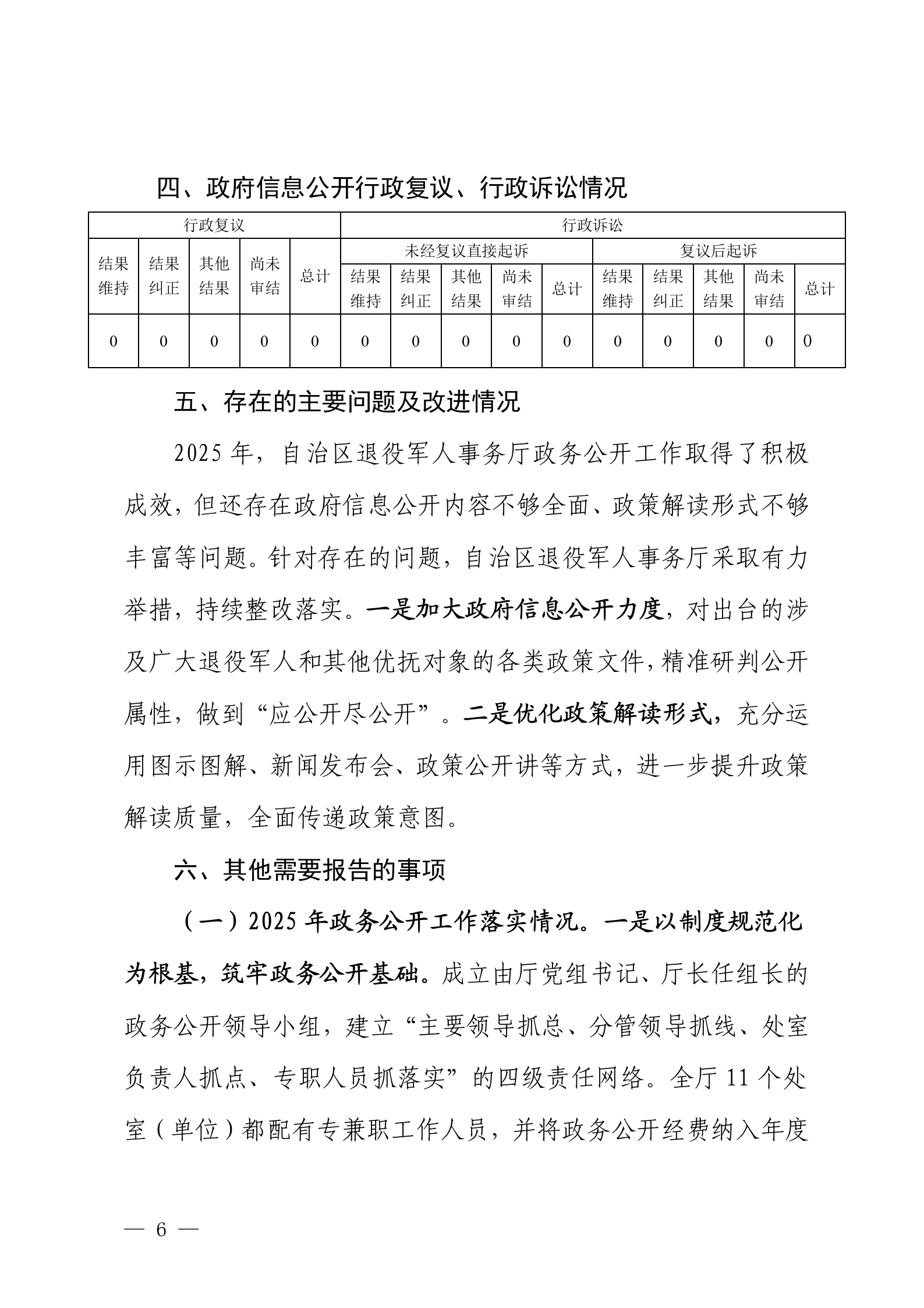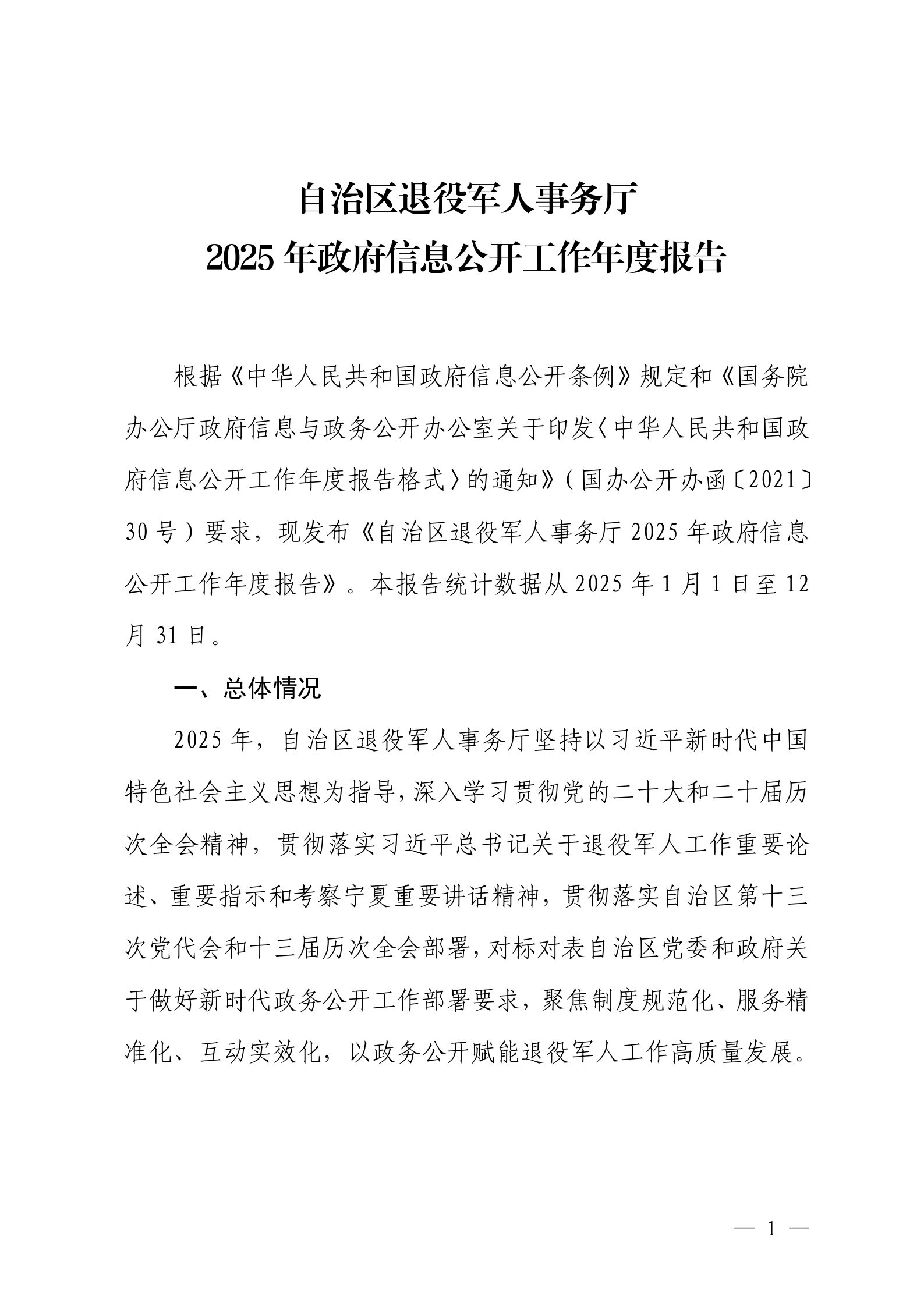 自治区退役军人事务厅2025年政府信息公开工作年度报告